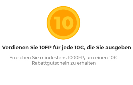 Für je 1000 Punkte erhalten Sie 10 €. bei Ihrer nächsten Bestellung. Sie können sich entscheiden, die Punkte nicht sofort zu verwenden und bis zu 5000 Punkte zu sammeln.