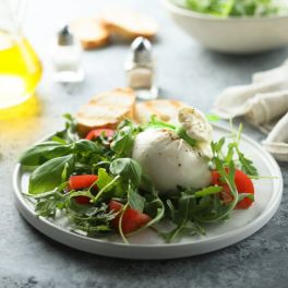 Burrata ist ein gesunder Käse, das steht fest. Da es sich um einen Käse handelt, enthält er einen relativ hohen Fettanteil, denn die Stracciatella, die in der Hülle der Pasta Filata enthalten ist, besteht aus Sahne und Mozzarella. Es ist also immer gut, es nicht zu übertreiben, auch wenn es schwer ist, einem so köstlichen Produkt zu widerstehen!