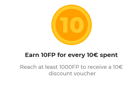 For every 1000 points you are entitled to 10€. on your next order. You can decide not to use the points right away and accumulate up to 5000 points.